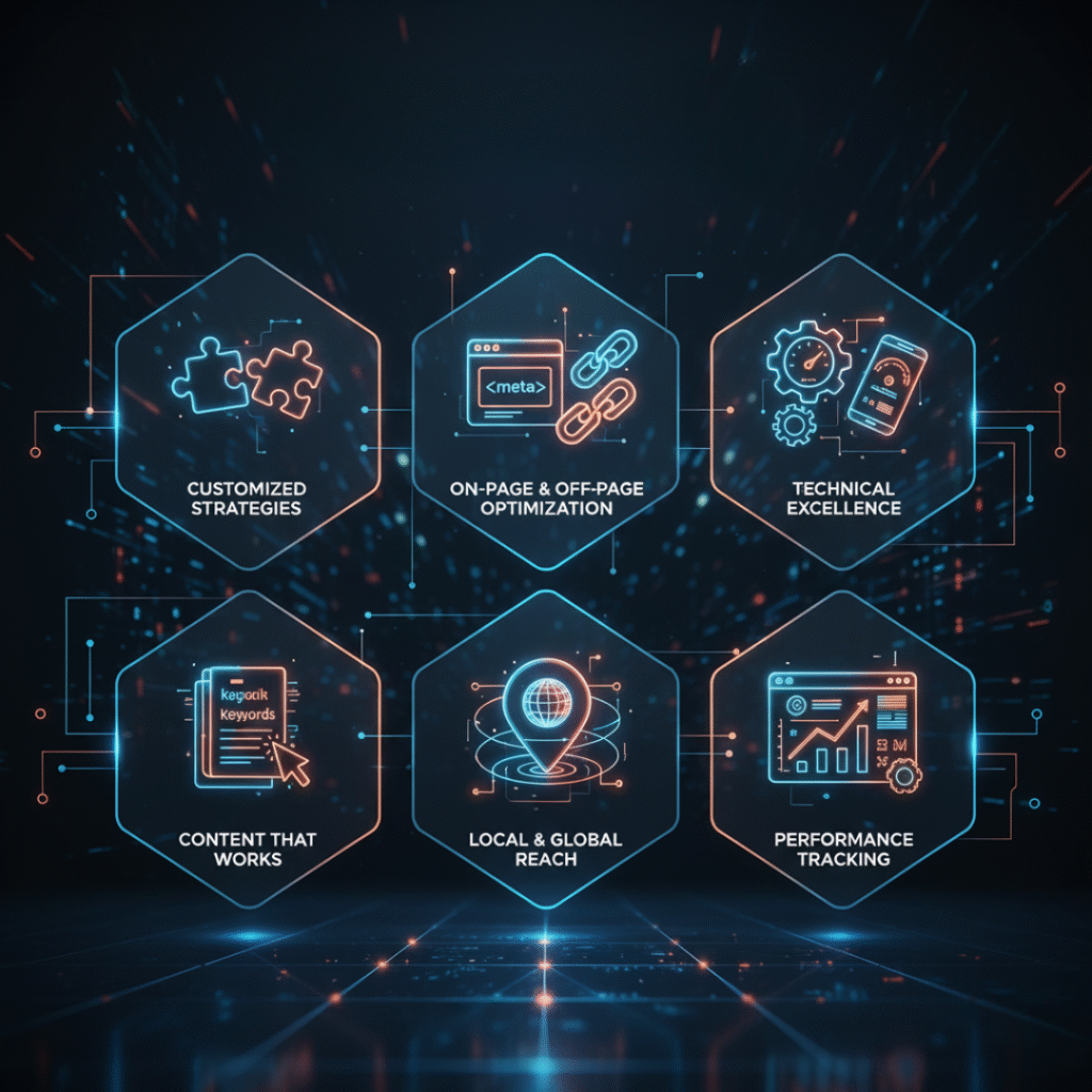 Our SEO service boosts your search rankings, increases organic traffic, and helps your business reach the right audience effectively.